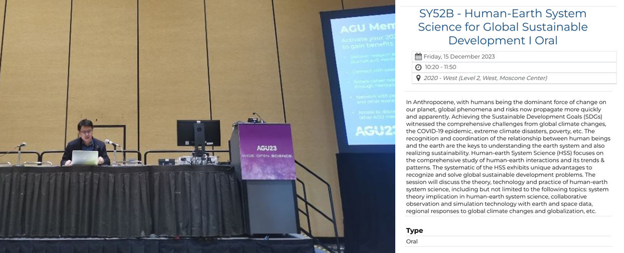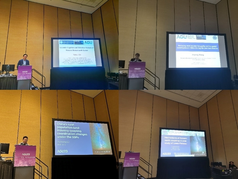 On the morning of December 15, at the session "SY52B: Human-Earth System Science for Global Sustainable Development", Researcher Yansui Liu, Jieyong Wang, and Yurui Li, as the initiators, introduced the background, purpose, and themes of the session. Under the moderation of Researcher Yurui Li, the presentations proceeded in sequence. Researcher Liu Yansui delivered a presentation on "Scientific Cognition and Detection Methods of the Modern Human-Earth System", discussing global climate change and sustainable development issues in the context of globalization, emphasizing the interdisciplinary nature of human-environment systems in natural and social sciences. He utilized diverse data sources and targeted modeling methods to reveal the types, structures, and spatiotemporal evolution of human-environment systems at global, regional, county, and village scales. He concluded by proposing paradigms for human-environment system research, a multi-source data platform for human-environment system research, and further theoretical considerations for advancing human-environment system science. Researcher Jieyong Wang presented on "Reducing Rural Income Inequality and Spatial Convergence in China Over the Past Two Decades", providing an overview of the background and poverty reduction process of rural income inequality in China. Using various modeling methods, he analyzed the evolving characteristics of rural income inequality in China and its spatial convergence features, highlighting the impact mechanisms of China's targeted poverty alleviation policies on income disparities and offering policy recommendations. Dr. Xuhong Li presented on "China's Rural Population-Land-Industry Coupling Coordination Changes under the Shared Socioeconomic Pathways (SSPs)", simulating and predicting rural elements under shared socioeconomic pathways to explore their coupling coordination characteristics and proposing policy measures to promote the coordinated development of rural human-environmental elements. Dr. Sixin Su participated online and presented on "Mechanisms of Human-Earth Coupling: A Case Study of the Loess Plateau", discussing the interactive coupling relationships and spatiotemporal evolution between socioeconomic factors and natural geographical environments on the Loess Plateau. He suggested promoting regional ecological industrialization through geotechnical engineering and human-environment coupling approaches.