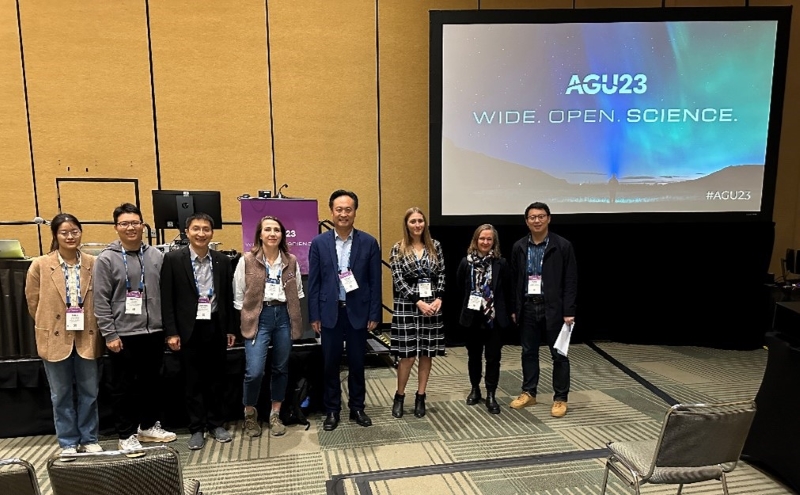The American Geophysical Union's 2023 Annual Meeting (AGU23) took place from December 11 to 15, 2023, at the Moscone Convention Center in San Francisco, USA. This conference brought together over 20,000 researchers in the fields of physical geography, oceanography, geology, and global climate change to share cutting-edge research findings, enhance understanding of the Earth and its environment, raise awareness about climate change, and foster greater collaboration to seek solutions. At the invitation of Nicole Oliphant, the Scientific Program Director of the American Geophysical Union, Researcher Yansui Liu, Jieyong Wang and Yurui Li attended the conference in San Francisco from December 11 to 15. On the morning of December 12, the team visited the poster exhibition at the Moscone Convention Center to engage in discussions and deep-dive conversations with young scholars on topics of mutual interest.