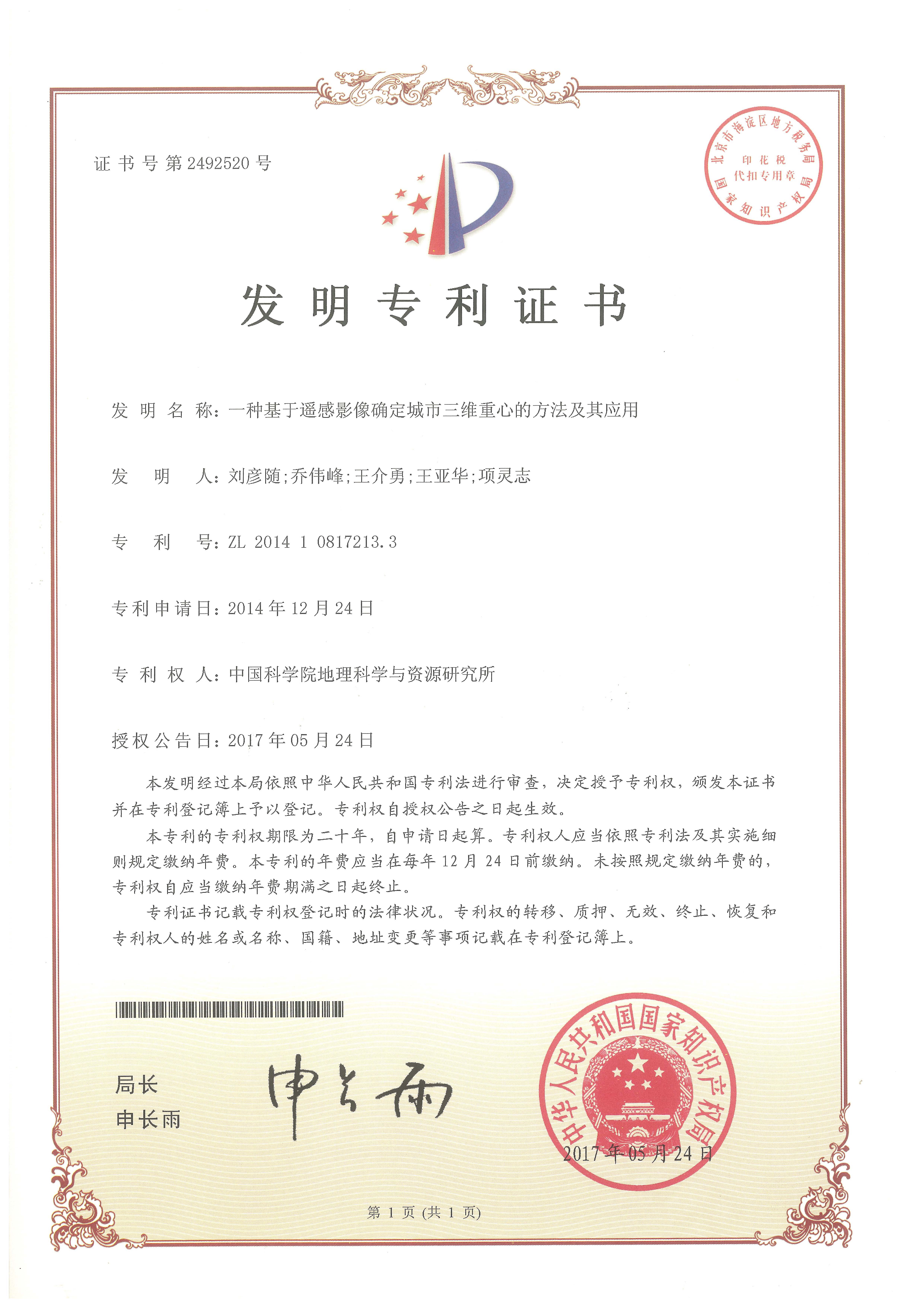 【授权发明专利】一种基于遥感影像确定城市三维重心的方法及其应用