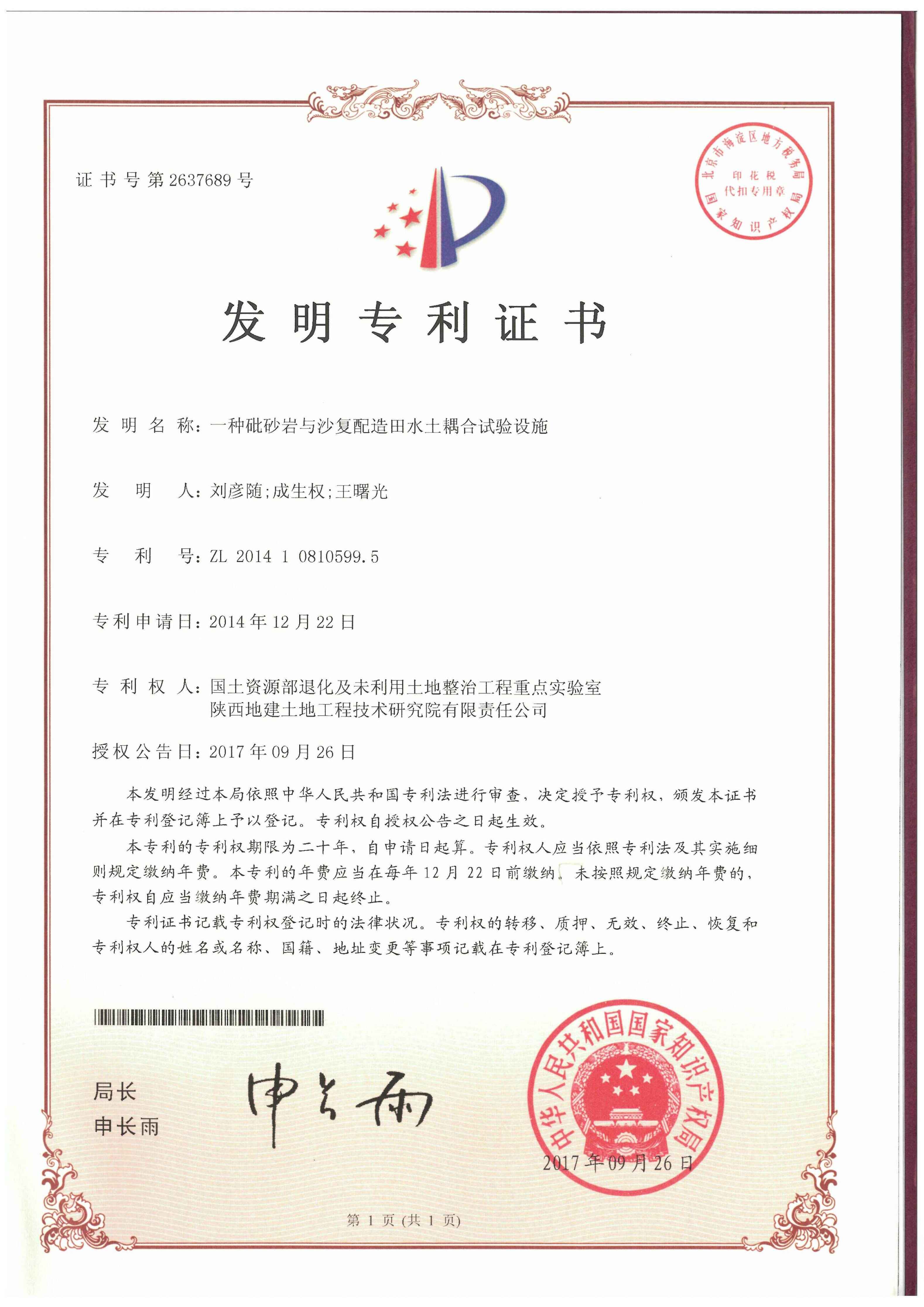 【授权发明专利】一种砒砂岩与沙复配造田水土耦合试验设施