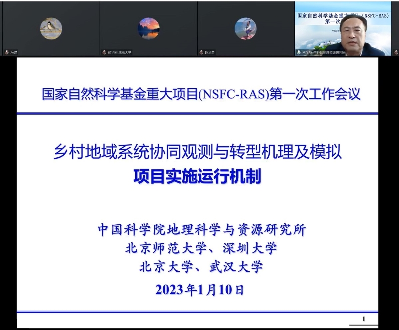 In order to learn the management methods of NSFC major project and prepare for the start of major project and implement the annual tasks of major project, the Project Office held the first working meeting of major project on January 10, 2023. Xiong Juhua, Director of Earth Science Division 1, NSFC, Cui Jing, Deputy Director of Scientific Research Division, IGSNRR, CAS, and other leaders of the project and sub-project discussed the specific implementation of the project. More than 70 researchers, including Prof. Wang Liming, Fan Zemeng, Li Yurui and Wang Jieyong from the IGSNRR, CAS, Prof. Liu Suhong from Beijing Normal University, Prof. Liu Chengfang, Luo Renfu, Zhang Bo and Feng Jian from Peking University, and Prof. He Jianhua and Liu Dianfeng from Wuhan University, participated in the conference.