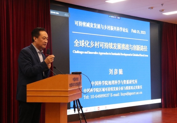 2021年2月25日,全国脱贫攻坚总结表彰大会在北京人民大会堂隆重举行,习近平总书记庄严宣告:经过全党全国各族人民共同努力,在迎来中国共产党成立一百周年的重要时刻,我国脱贫攻坚战取得了全面胜利。2022年2月25日,时值党中央国务院宣告脱贫攻坚取得伟大胜利一周年之际,为总结经验、表彰先进,明确新时期服务巩固拓展脱贫攻坚同乡村振兴有效衔接的新需求、新目标,中国科学院地理科学与资源研究所(以下称中科院地理资源所)举办了“可持续减贫与发展专家研讨会”。2023年2月25日,时值两周年之际,为进一步交流成果、推进创新、支撑决策,由中科院地理资源所、“一带一路”减贫与发展联盟(ANSO-APRD)、国际地理联合会农业地理与土地工程委员会(IGU-AGLE)联合主办的“可持续减贫发展与乡村振兴科学论坛”在中科院地理资源所召开。会议举行了国际地理联合会(IGU)颁奖仪式,举办了可持续减贫发展与乡村振兴专家研讨会与专题论坛、发布了可持续减贫与发展大数据平台(国际版)。“一带一路”国际科学组织联盟(ANSO)秘书处高级事务主管贾波,国际地理联合会(IGU)主席Michael Meadows院士,IGU副主席、中国科学院傅伯杰院士,IGU原副主席、中国科学院周成虎院士,原国际食物政策研究所(IFPRI)所长、中国农业大学樊胜根教授,中国地理学会副理事长兼秘书长张国友研究员、发展中国家科学院院士、ANSO-APRD主席刘彦随研究员,中国地理学会副秘书长、编辑出版工作委员会主任何书金研究员,西南大学国土资源研究所所长、“全国脱贫攻坚先进个人”称号获得者廖和平教授,临沧市乡村振兴局局长刘绍军,沧源佤族自治县政协党组书记李文明,沧源佤族自治县乡村振兴局党组书记张荣康,盐池县委常委、政府副县长白姜江,以及中国农业科学院、北京师范大学、华中农业大学、中国地质大学、西南大学、湖南师范大学、南京师范大学、河南大学、内蒙古师范大学等单位的200余名专家学者和地方政府代表参加了会议。