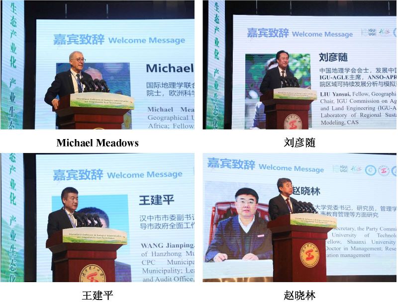 国际地理联合会(IGU)主席、南非皇家科学院院士Michael Meadows,中国科学院院士、发展中国家科学院院士、中国科学院生态环境研究中心学术委员会主任傅伯杰,中国科学院院士、中国科学院教育部水土保持与生态环境研究中心研究员邵明安,“一带一路”国际科学组织联盟(ANSO)秘书处执行主任曹京华,发展中国家科学院院士、中国地理学会会士、中国科学院区域可持续发展分析与模拟重点实验室主任刘彦随,发展中国家科学院院士、塞尔维亚克拉古耶瓦茨大学教授Mihajlo Jakovljevic,澳大利亚阿德莱德大学地理-环境与人口系教授Guy M Robinson,法国国家农业-食品和环境研究所教授Coline Perrin,英国社会科学院院士、广西大学教育部长江学者特聘教授龙花楼,陕西理工大学经济管理与法学学院院长胡仪元,陕西省汉中市人民政府副市长郭志胜,汉中市洋县人民政府副县长何天华,中国科学院地理科学与资源研究所副研究员、中国现代农业与乡村振兴研究示范基地(洋县)负责人王永生等参加会议并作大会特邀报告或主旨报告。