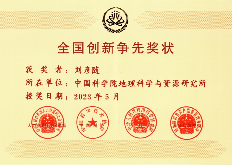 2023年5月30日是第七个“全国科技工作者日”,第三届全国创新争先奖表彰大会在京隆重举行。中国科学院地理科学与资源研究所研究员、中国科学院区域可持续发展分析与模拟重点实验室主任刘彦随荣获第三届全国创新争先奖状。面向国家重大需求与社会服务领域的主要贡献:创新发展乡村地域系统理论和探测体系,全程服务国家精准扶贫与乡村振兴重大战略决策;主持研制现代农业模式与关键技术,精细服务典型区域农业农村发展和土地整治工程实践;总结提炼精准扶贫中国方案与工程技术并推向世界,引领服务国际可持续减贫与发展战略。