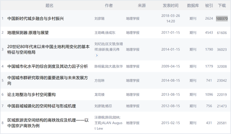 《地理学报》一篇6年下载超10万、被引2600多次的论文