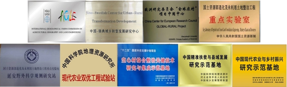 野外观测研究基地(台站)有“黄土高原治沟造地与土地持续利用观测研究站”(陕西延安)、十二五国家科技支撑计划项目“空心村综合整治关键技术研究与集成试验示范基地(站)”(山东禹城)、“中国科学院地理资源研究所现代农业双优工程试验站(陕西榆林)”、“中国精准扶贫与县域发展研究示范基地(河北阜平)”。